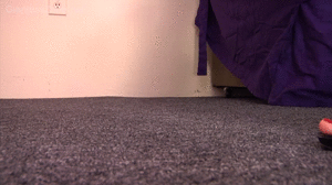 After the walk, Velvets asks if we’re ready to be shrunk for the last time. Of course, we nod yes and she sXXXXs her fingers a final time and we are at her feet. Still standing, Velvets playfully kicks us a few times with her toes from both feet and then picks up her soles and gives us an ambush of feet, one foot, then the other, then both. “Fee Fi, fo fun, my feet make you cum” she laughs. Loving it, we lean into her feet to harden the contact and kiss her feet back and forth as best we can. After our brief foot worship, Velvets lays down on her side on the floor in front of us.